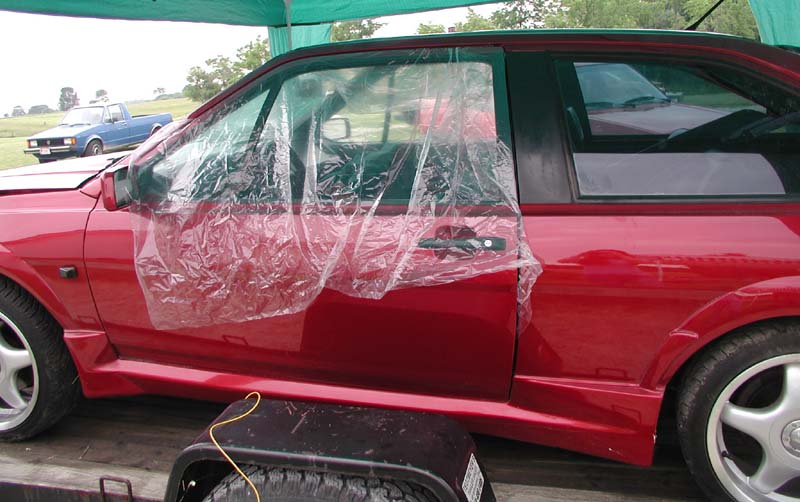 tried to get my door open but was unable to. I climbed out of